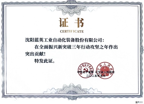 5月13日,遼寧省委省政府對在全面振興新突破三年行動攻堅之年作出突出貢獻的241戶企業(yè)予以通報表揚。其中,全省共有111家民營企業(yè)獲得表彰,沈陽藍英工業(yè)自動化裝備股份有限公司位列其中。