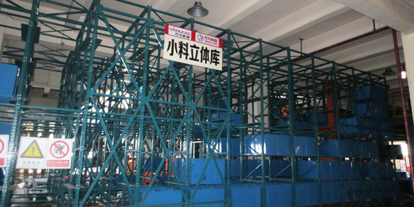料袋裝盤后,輸送至立體庫進(jìn)行儲存。根據(jù)生產(chǎn)任務(wù),將所需小料的托盤出庫,通過升降機(jī)、空中輸送線、翻轉(zhuǎn)機(jī)、皮帶輸送機(jī)送入密煉機(jī)。