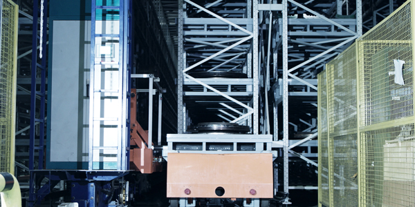 型腔庫(kù)采用六個(gè)巷道共用一臺(tái)堆垛機(jī),通過(guò)轉(zhuǎn)軌車完成巷道間互通、實(shí)現(xiàn)堆垛機(jī)變軌。