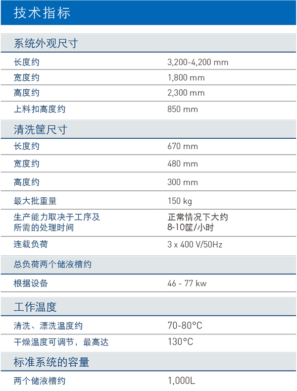 · 多級清洗/漂洗工藝,包括熱風和真空干燥